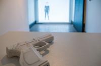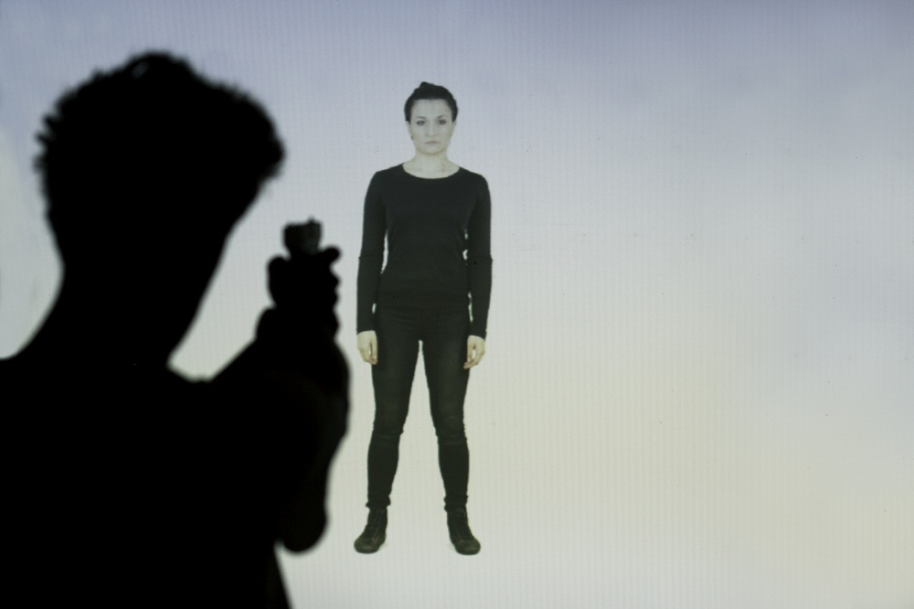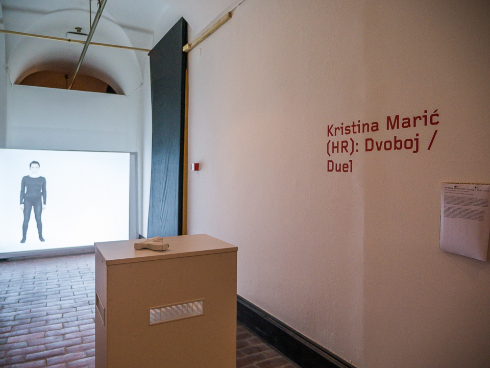 Interaktivnu računalnu instalaciju Dvoboj čine video projekcija i naprava u obliku pištolja. Na projekciji se pojavljuje ljudski lik u prirodnoj veličini, odnosno autorica rada. Koja je reakcija promatrača kada se nađe suočen s djelom ili alter-egom autorice? Može li provokacija višesmjerne komunikacije imati ikakav učinak? Prikaz tijela autorice izložen je virtualnom nasilju publike. Ima li nečeg opas...više