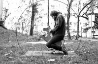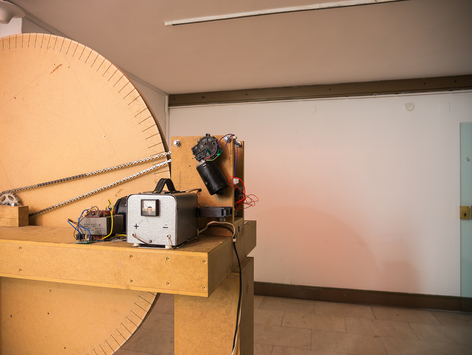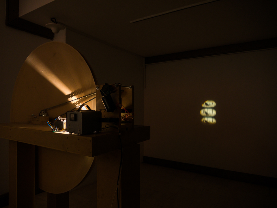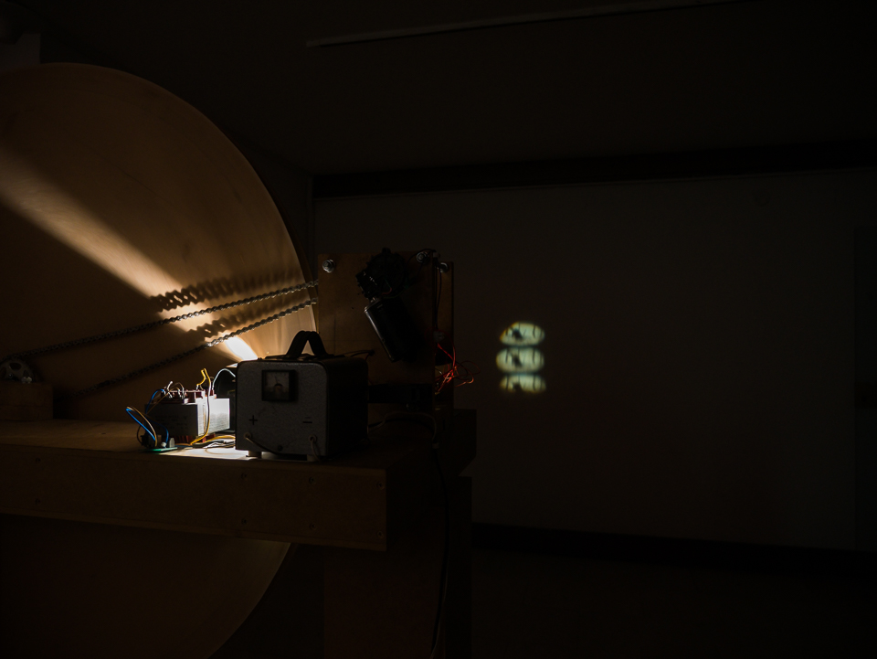 je ironičan pokušaj izokretanja evolucije filmske tehnologije. Prvotni cilj ovog rada bio je napraviti funkcionalan zoopraksiskop, koji se sastoji od dijaprojektora prerađenog u laternu magicu, elektromotora, strujnog transformatora i nekoliko zupčanika bicikla. Projektor prikazuje film u kojem se autor ljulja na konjiću za igranje koji se nalazi u dječjem parku. Radnja je snimlj...više
